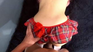 Pounding this small schoolgirl in mini skirt and I creampie all her pussy