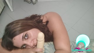 POV Italian girl takes the dildo in her mouth