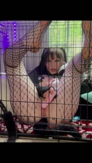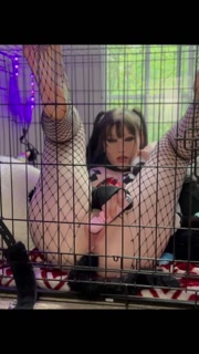 Pretty kitty plays in her cage