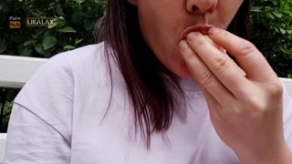 Pretty woman fucked herself with a banana in the park, and then ate it in front of people