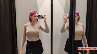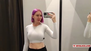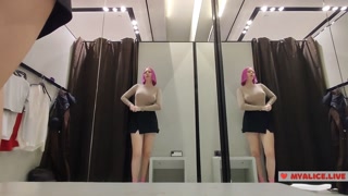 Prøv at slæbe tøj i prøverummet. Store bryster prøver på træk.