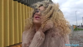 Public Agent Spanish shaven pussy fucked outdoors in public
