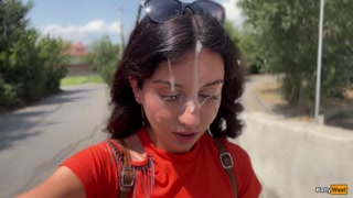 Public Blowjob in the Bushes with Stranger and Crazy Cumwalk Covered in Cum