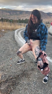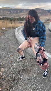 Public hot girl standing up to piss