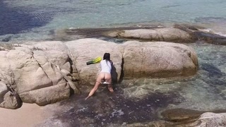 Public RISKY PISSING and Pussy Flash on Crowded Beach