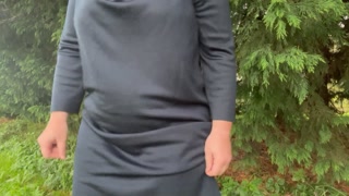 Public wetting accident outside in dress with lace underwear