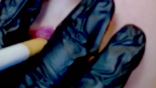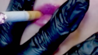 Purple Lipstick Smoking with Black latex gloves ( FAN VIDEO ) special thanks!