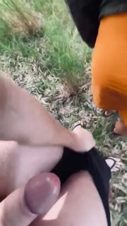 Quickie in nature. Cum and put it back in