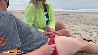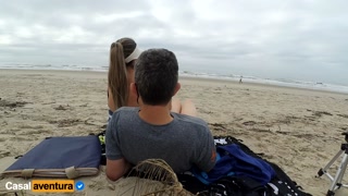 Quickie on public beach, people walking near - Real Amateur