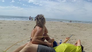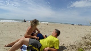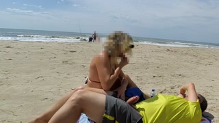 REAL AMATEUR PUBLIC HANDJOB RISKY ON THE BEACH !!! PEOPLE WALKING NEAR...