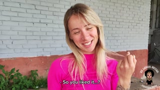 Real Extreme Public Sex+Sloppy Deep Sucking with a new pretty neighbour behind the shop.