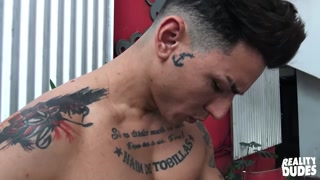 REALITY DUDES - Tattooed Bad Boy Axel Fucks Ro The Janitor Outdoors After A Hot Courtyard Blowjob