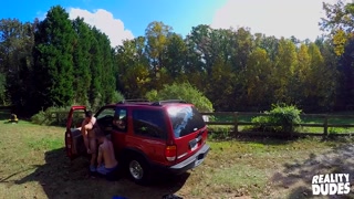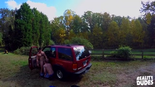 REALITY DUDES - Tattooed Stud Gavin Taylor Almost Gets Caught Sucking His Friend's Cock In Public