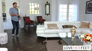 Redhead big titty MILF gives a slippery footjob