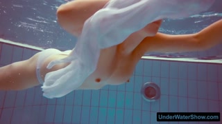 Redhead in a white dress and sexy bikini