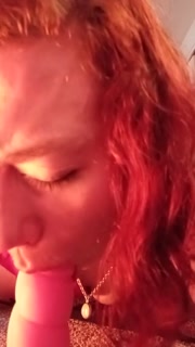 Redhead rides toy and facefuck, oiling up tits.