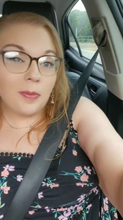 Riding in the car playing with my tits and fat wet pussy