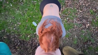 RISKY PUBLIC SEX - Busty Redhead Titty Fucks In Public Woods