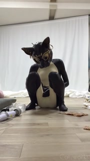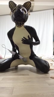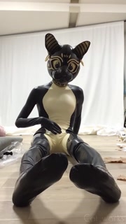Rubber bastet cum in his latex catsuit with magic wand🐾💕