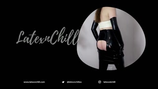 Rubber goddess teasing and showing off the sounds of latex in rubber skirt long shiny gloves ASMR