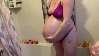 Rubbing my massive pregnant belly for you