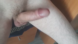 Russian guy after a shower jerks off his big cock in the room