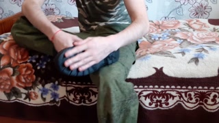 Russian soldier took out his big cock from his pants and fucks an artificial vagina