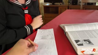 Schoolgirl Having Fun with a Classmate while Parents are not at Home instead of Preparing for the Unified State Exam