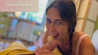 Schoolgirl makes a blowjob with a lollipop