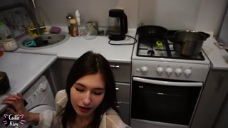 Schoolgirl saw a big cock and cum after 3 minutes of meeting.