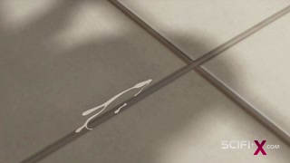 Sci-fi BDSM in the bunker with a sexy young cuffed blonde with many boobs