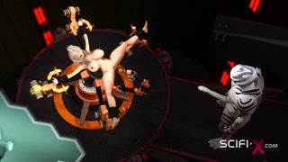 Sci-Fi BDSM. Sex android fucks hard a hot cuffed hottie in restraints