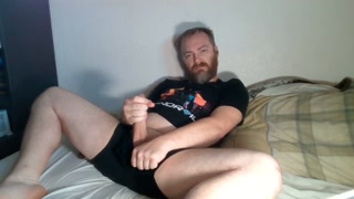 Scruffy dude jerks off to porn, sniffs underwear, & eats his own load