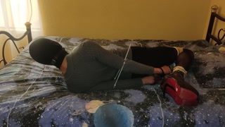 Selfbondage Hogcuffed vibed n orgasm denied