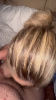 Sexy blonde milf sucks dick