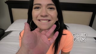 Sexy brunette college girl slobbers on a fat dick