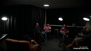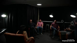 Sexy busty latina fucks 5 guys and eats cum
