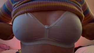 Sexy girl lifted her blouse and showed her juicy natural tits and played with her nipples
