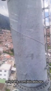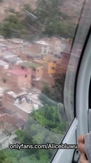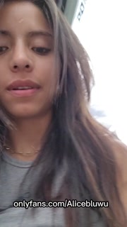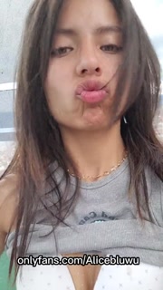 Sexy Latina brunette showing her tits in a nice city