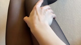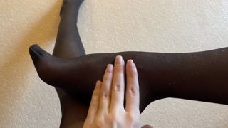 Sexy legs and feet in black nylon pantyhose