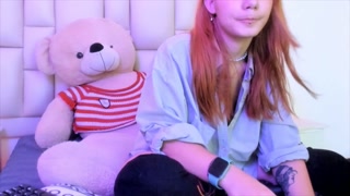Sexy redhead college girl with hairy pussy masturbates while recording a video for her math teacher