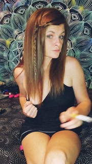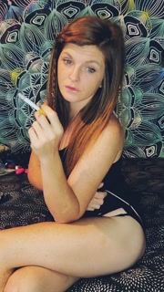 Sexy redhead smoking and showing off perfect tits