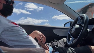 Sexy stranger sucks dick in a car in a public parking lot!