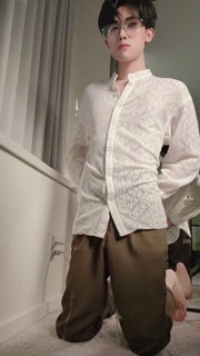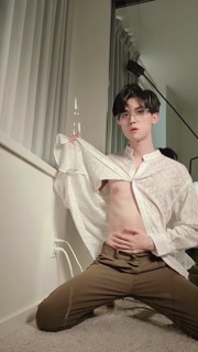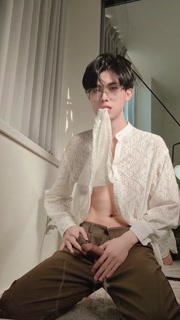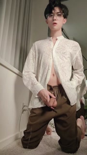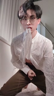 Sexy twink in suit swing his cock and cum all over your face and tongue for money