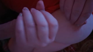 She cums with a whole hand inside her, then he blasts a huge load on her tits
