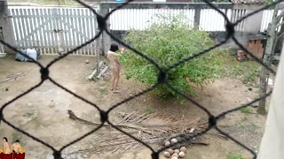 She goes naked in front yard and expose herself for a worker
