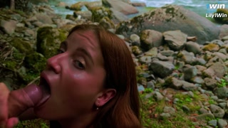 she got a mouthful of warm cum in the forest