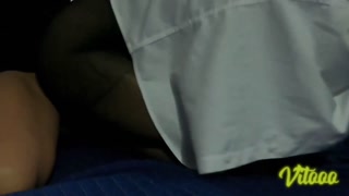 She is in stockings and with her tight thong she receives my cock