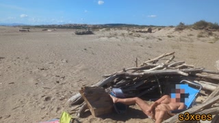 She masturbates at the nudist beach in front of voyeurs