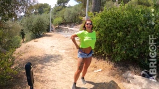 She shows her boobs behind a stranger after spinning the wheel